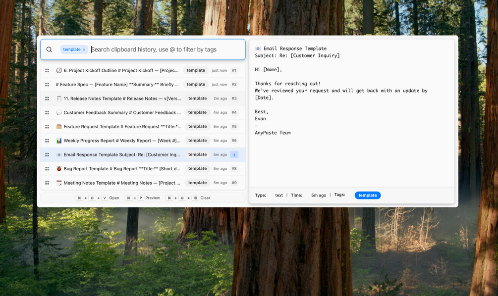 AnyPaste helps you reuse everything you’ve ever typed — instantly. One shortcut, one search bar, infinite time saved.